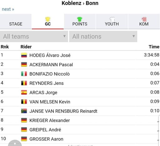 What a day.... I went in the first breakaway with 6 and in the end with 3. GC place 4th