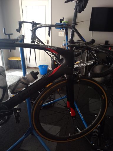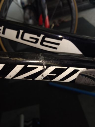 Cracked SWorks, bad dog...on Seth's old race bike now.