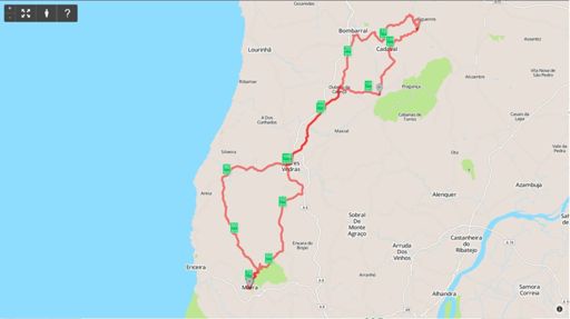 Barreiras » Vermelha » Bombarral » Torres Vedras » Gradil » Mafra » São Pedro » Torres Vedras » Vilar » Cadaval » Barreiras