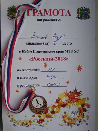 Разминка+тех. старт+апхил "Россыпи-2018". 1-й в группе М 50+ (из 1-го) и 5-й в абсолюте.