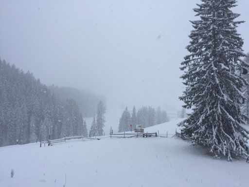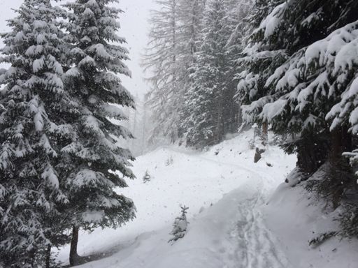 es schneit....... trotz Spikes 2-mal zu Boden gegangen