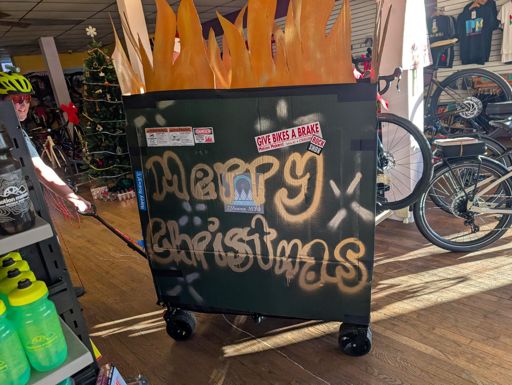 Sylva Holiday Parade - Dumpster Fire on Bikes!