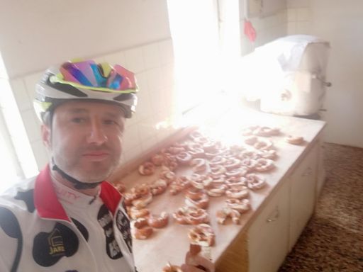 Wichtig war der Kuchen 🎂 Runde und das wir trocken bleiben, beides hat geklappt und der Kuchen war wie immer suuuupppeeerrr lecker 🚴🚴🎂🍵😋😋😋🌞😃