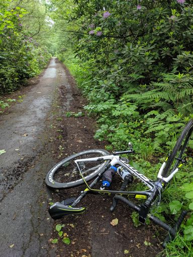 Crank loop in reverse. Face planted on damp Coach Road.