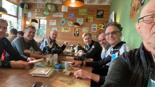 1e Wegrit met 9 man - feestje bij het Slimme Schaap