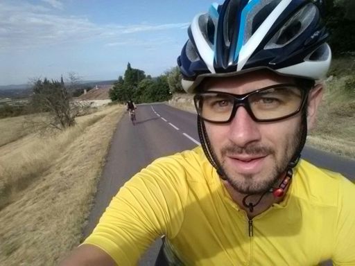 Avec le J en vélo et Lalouille derrière moi