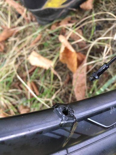 Vtt . Rayon arraché par une branche et carbone de la roue abîmé 😩retour au bercail...