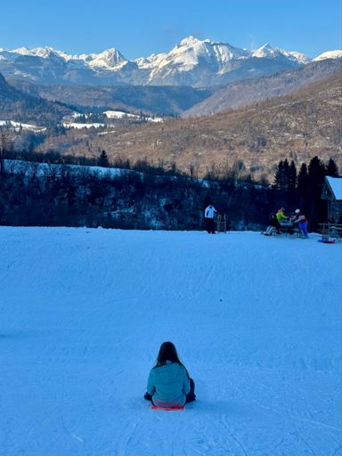 Bit of sledging in Bohinjska Bistrica with the youngest, plus a photo stop in Bled on way back
