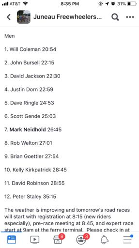 Tour of Juneau Stage 3 Thane TT win, PR by 9 seconds (20:54 officially)