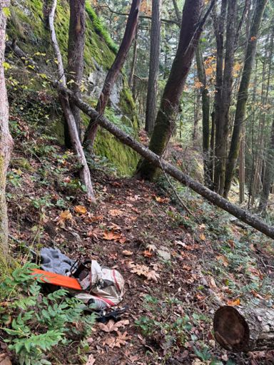 Hike aboot with saw and rake