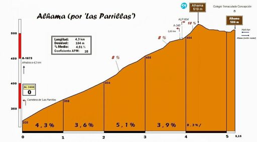 Gádor-Alhama por Las Parrillas a plato grande 50x19 (11' a 4,67 w/kg)