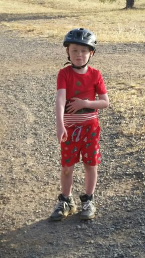 OTB for the little guy, after attempting first skid. Next time he will try the rear break only.