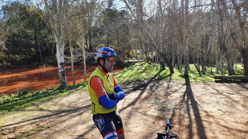 6° en Aznalcollar con pinchazo en la primera vuelta, búsqueda de una bomba por las carpas, segunda vuelta con la rueda dura y tercera otra vez flaneando. El mousse me ha salvado del abandono.