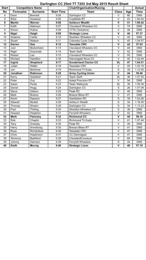 Darlington 25, awful weather, 57.03 official