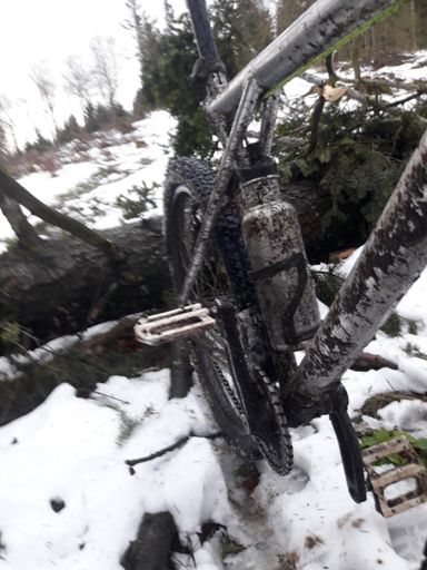 Singlespeed im Schneematsch mit Wolkenbruch