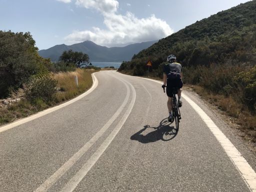Hard up the Poulithra climb, then steady up the monastery climb.