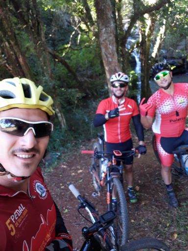 Pedalada de mountain bike ao entardecer