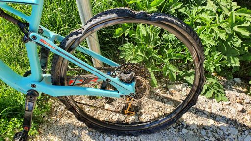 Sortie VTT écourtée cause saut de chaîne qui me casse un rayon d on la tête vient percer le fond de jante donc crevaison 😡😡
