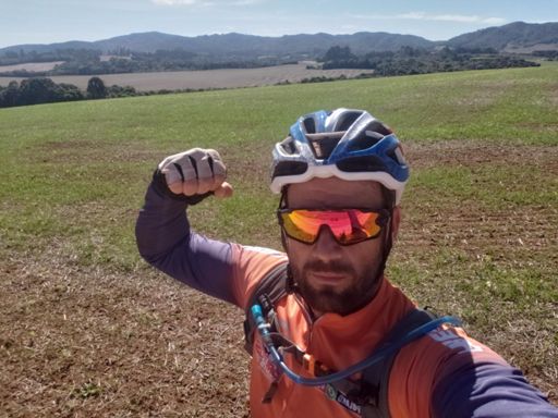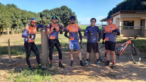 Volta de bicicleta de montanha ao entardecer