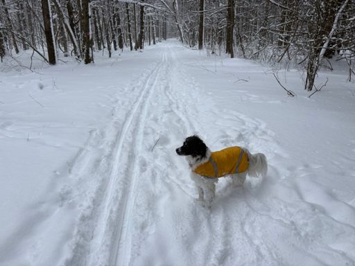 Afternoon dog walk on skis (me, not the dog, obvi)