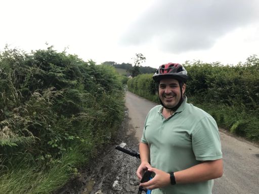 Dodging the showers with Scott’s new bell.