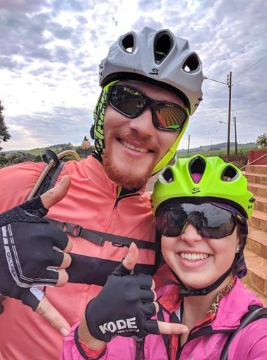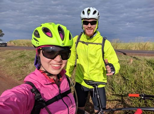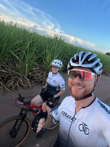 Pedalada de mountain bike ao entardecer
