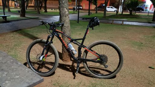 Pedalada de mountain bike ao entardecer