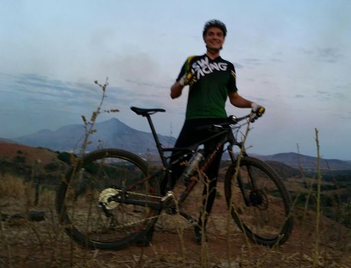 Pedalada de mountain bike ao entardecer