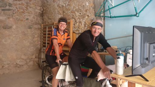 Kerry's first tandem ride... Indoors! BigRingVR - Costa Brava South