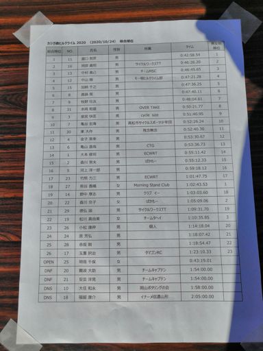 カジガ森ヒルクライム2020 276W/54.1kg/5.1wkg