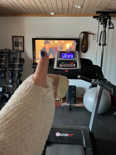 Begrenset med aktivitet med gipsen, dermed ble det en times gange på tredemøllen. 👣👣 Kan ikke risikere å «tryne» 🙄