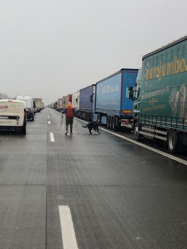 Spaziergang im Stau. Bisher 5 Stunden - dauert noch