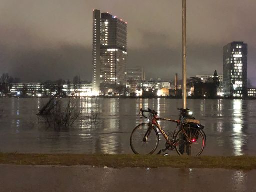 Schön hier unten am Fluss. Recht kaltes Rheinwasser, recht feucht-warme Luft -> Nebel