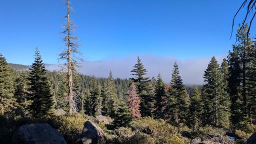 Blue skies above, gray skies below