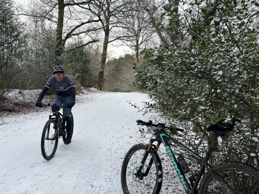 Glorious wintry MTB with Ben. Snow and ice, coffee and beer