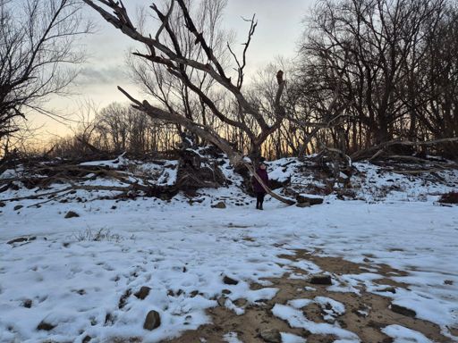 Dunaparton a zátonyon hóropogtató séta Zsuzsival
