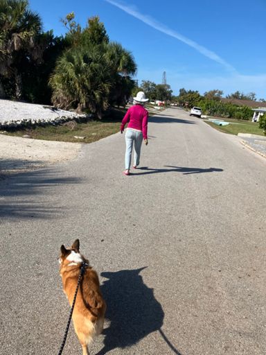 Cedric & I take our 2nd outing joining part of Chris’s walk, visit Linda, then a quick spin around the island