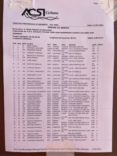 Campionato toscano degli enti 10ºass 3ºcat Vet1