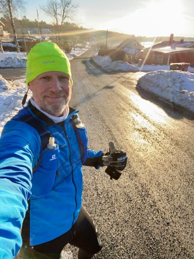 Lunch Run distans i halka , dubbskor va ett måste