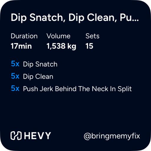Technique: Dip Snatch, Dip Clean, Push Jerk Behind Neck In Split