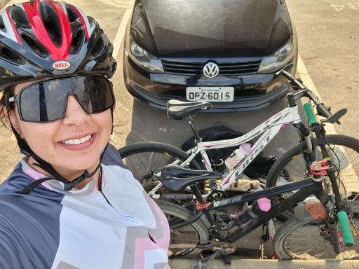 Com a bicicleta do marido indo pro pilates