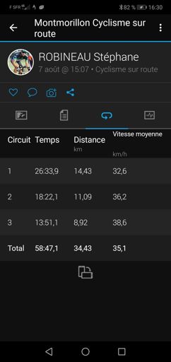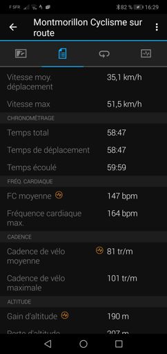 Séance 50km avec du rythme vitesse moyenne 33 km/h (lap 2)