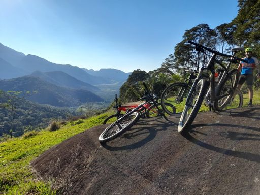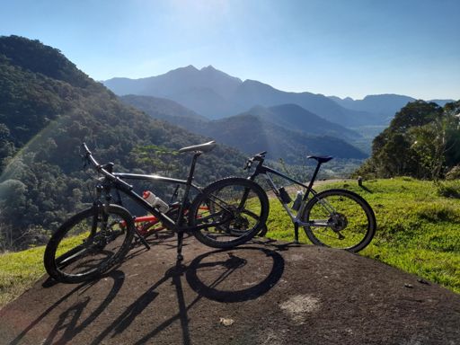 Pedalada de mountain bike ao entardecer