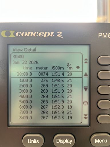Veslak C2: 30’ f20 … měřený trénink