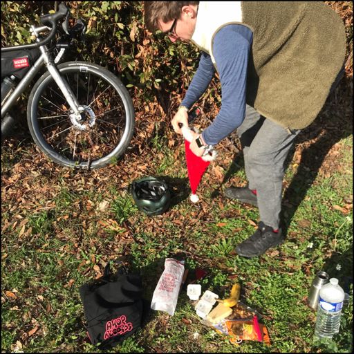 Où le pédaleur termine sa Rapha Festive 500 au bord des étangs et devant des fruits de mer