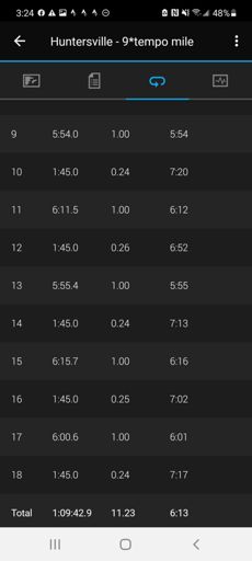9 * tempo miles with 1:45 recoveries