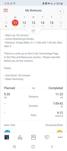 2-mi w/u, 2-mi tempo, & 2-mile c/d