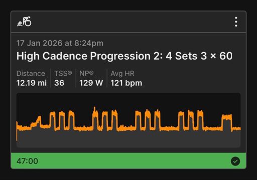 High Cadence Progression 2: 4 Sets 3 x 60