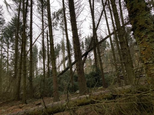 Carnage in the woods⌠trees down everywhere. Might be time to buy a indoor trainer!