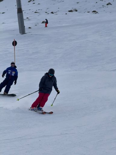 Skiabfahrt am Morgen